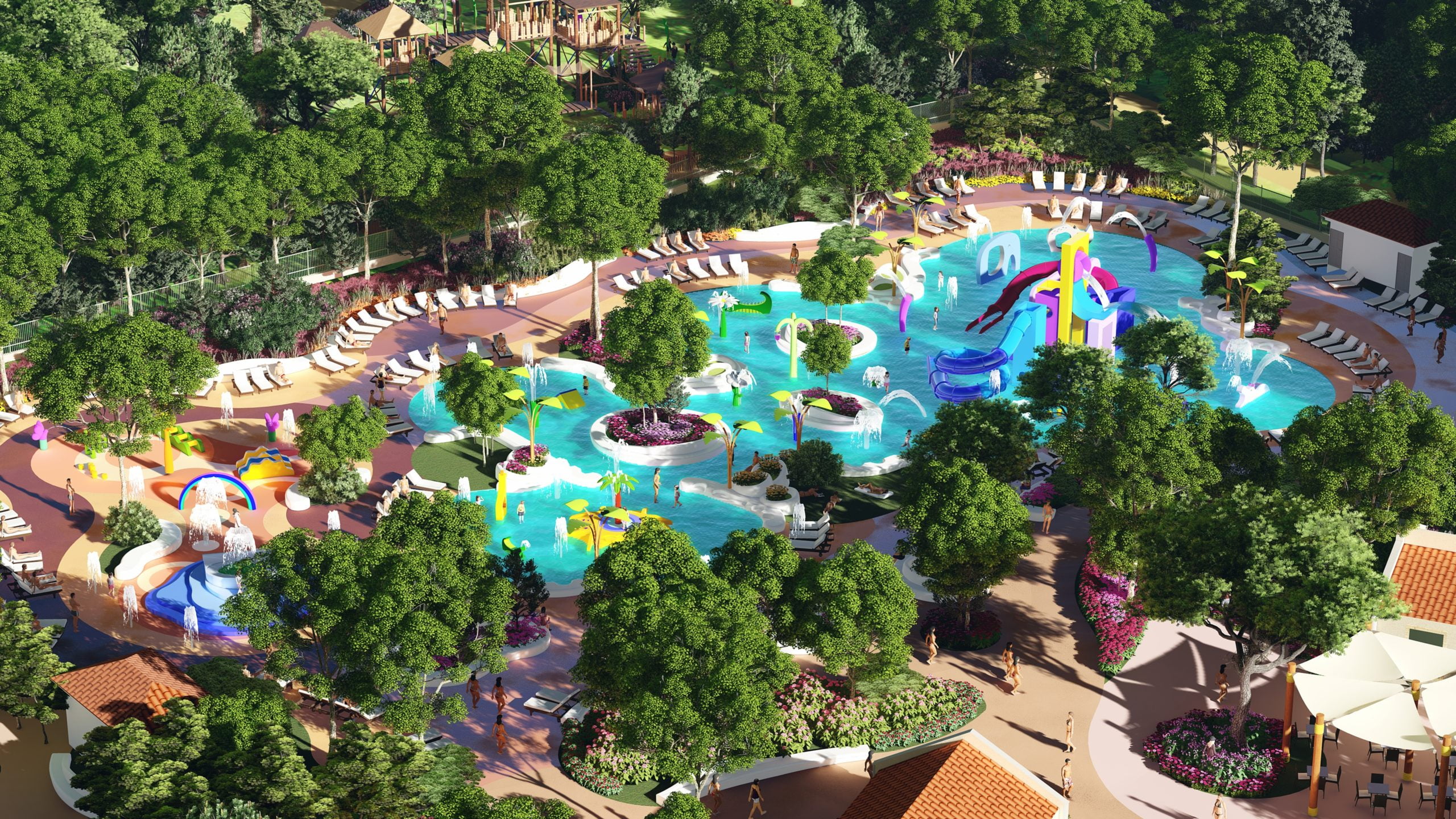 Ландшафтный дизайн в индустрии туризма и отдыха — это сложная дисциплина, которая сочетает в себе дизайн зеленых зон с размещением и интеграцией зданий, а также с установкой всех видов аттракционов, будь то водные или сухие. Это работа, в которой участвуют множество факторов, и конечной целью которой является создание гармоничной и практичной среды одновременно. В конечном счете, речь идет о том, чтобы предложить посетителям все возможности для получения удовольствия в красивом и безопасном комплексе, где легко ориентироваться и выбирать из множества уникальных впечатлений. Здесь мы предлагаем ключевые элементы, «цветовую палитру», с которой мы работаем в нашей задаче по проектированию и интеграции ландшафта и аттракционов.