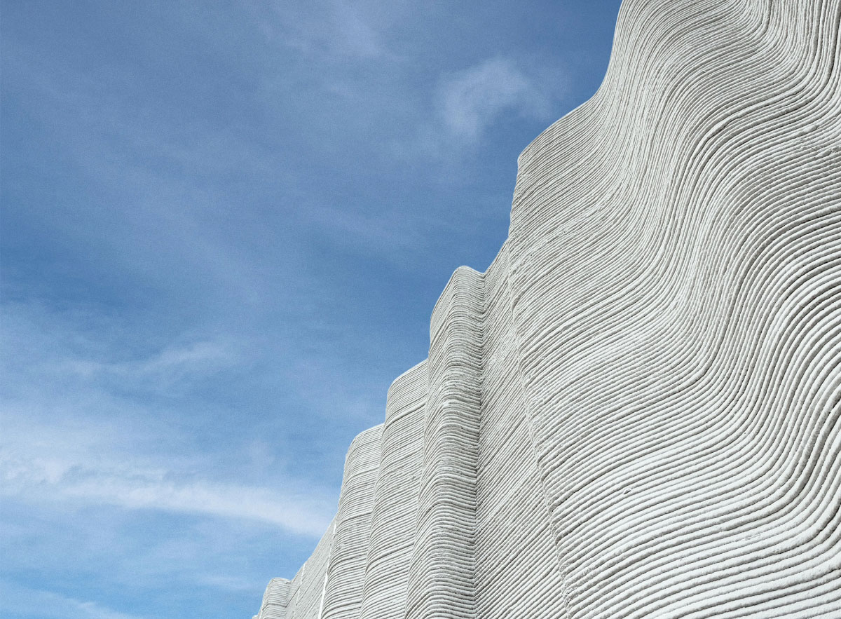 Архитектура двухэтажных школ вдохновлена дюнами катарской пустыни. Их изогнутые, органичные стены были бы чрезвычайно дорогими — или просто невозможными — при использовании традиционных методов строительства. 3D-печать позволяет реализовать эту формальную свободу, резко сокращая расход материалов, количество отходов и, как известно, выбросы CO₂.