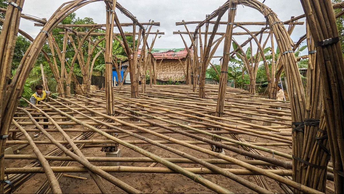 В деревне под Мандалаем, где грунтовые дороги превращаются в реки после дождя, а память о конфликтах ещё свежа, стоит дом. Не бетонный, не кирпичный — а сотканный из пучков тонкого бамбука, того самого, что раньше шел на дрова или просто сжигался как отход. Его стены изгибаются в мягкие своды, напоминающие пещеры или гнезда — формы, проверенные временем, но собранные по инженерному расчету. Внутри — семья, впервые за годы, знающая, что у нее есть место, которое не рухнет от ветра, не раскрошится от сырости и не исчезнет после следующего решения чиновников.