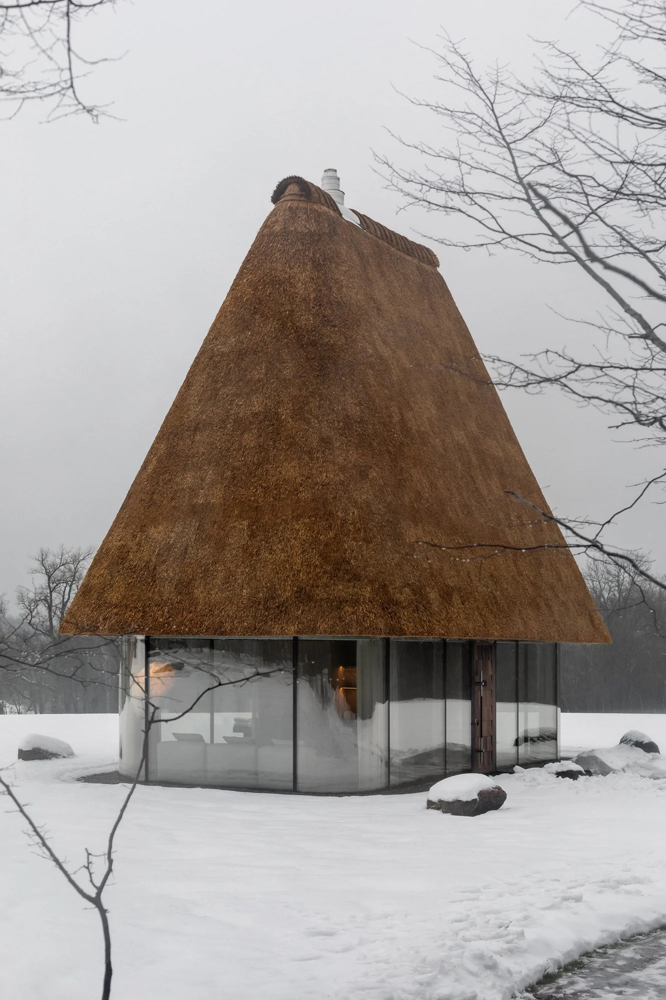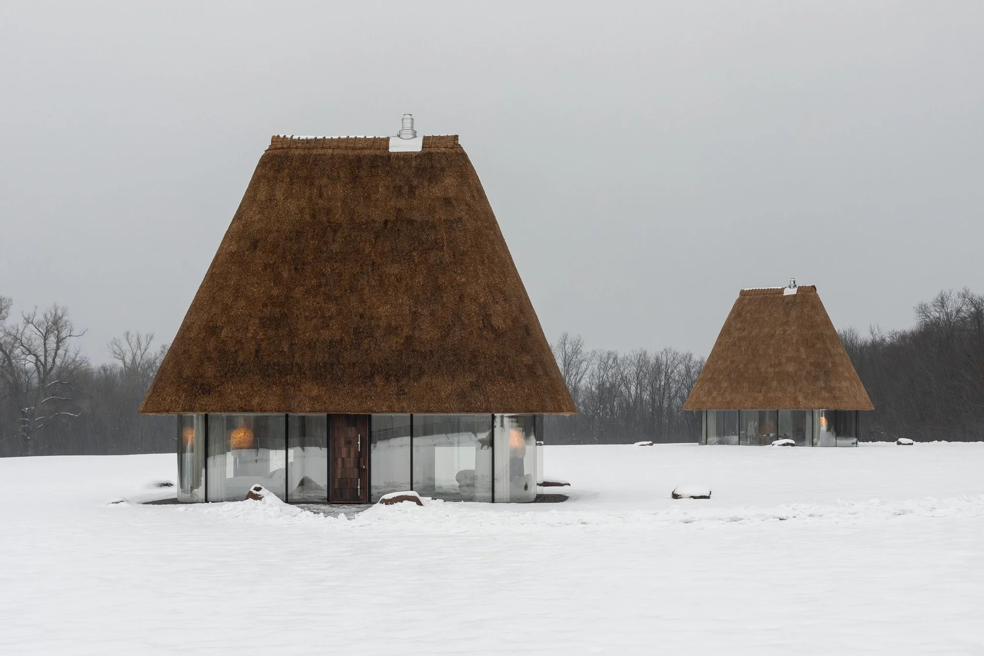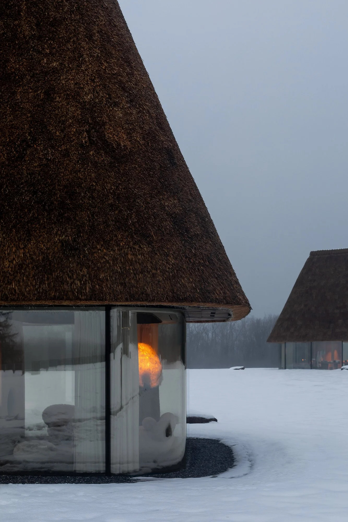 силуэтом, напоминающим традиционную шляпу или огромный гриб. Это гостевые домики под названием «Под тростниковой крышей» — проект архитектурного бюро YOD Group, который опирается на народную память и буквально «строит дом с крыши».